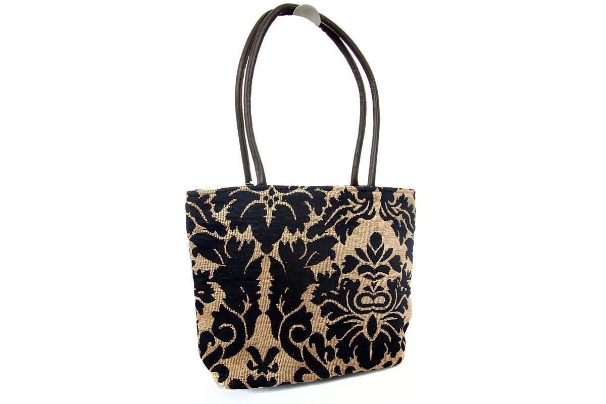 Tapestry Tote Bag. Top zipper closing.