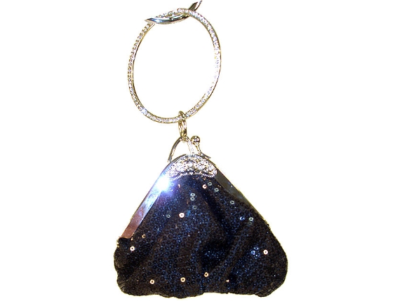 Sequin beaded evening bag. It has kiss lock closure and comes with ring strap.