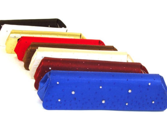 Satin embroidered evening bag in solid colors. It has shoulder chain.