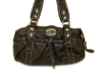 PVC fashion handbag made with multiple outer compartments and double detachable shoulder straps. Made with large studs and a top zipper closure.