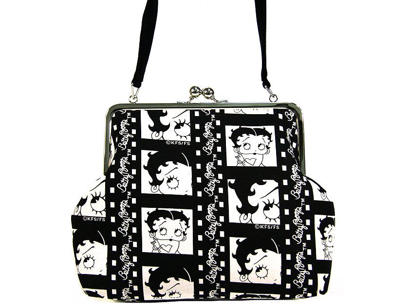 Betty Boop Film Bag with kiss lock. Made of fabric and detachable single strap .