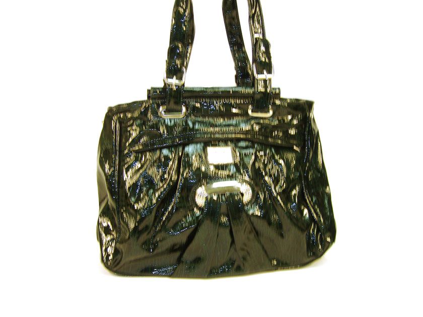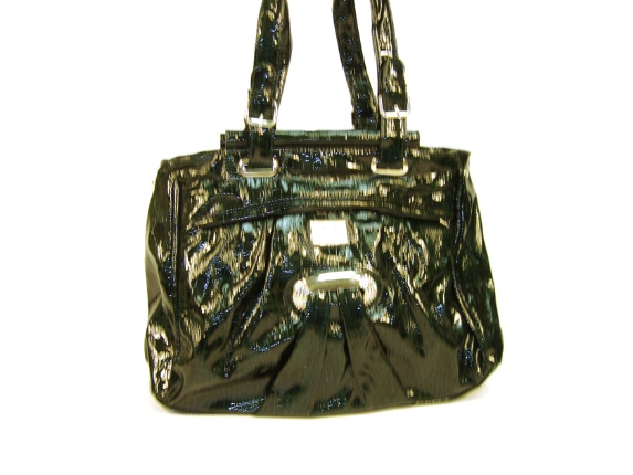 Fashion Handbag is made of polyurethane material. This is a double strap bag with belt buckle like straps with a top zipper closure.