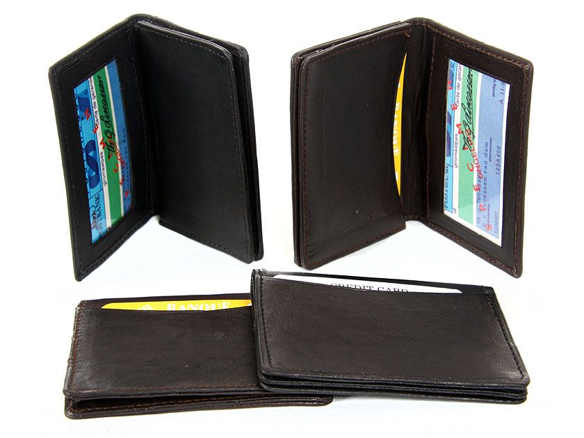 This is a genuine leather credit card and ID holder in a bifold slim design. As this is genuine leather, please be aware that there will be some small creases and nicks in the leather but the wallet are all brand new.