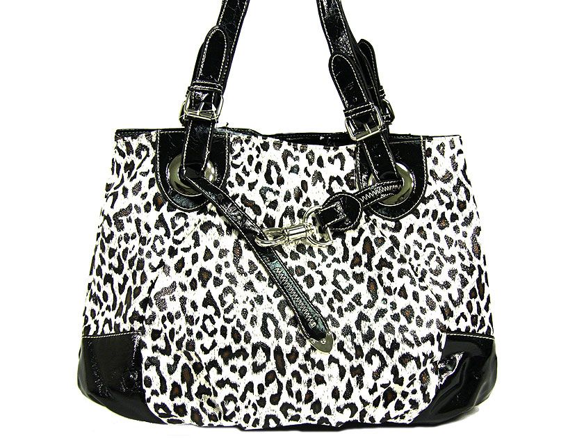 Leopard Printed Tote Bag With Black Trim #73-23778-WB