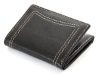 Carry your money in style. This is a genuine leather Tri-fold mens wallet with double bill feature, 6 credit card slots and center picture ID window. Features elegant white stitching on the outside. As this is genuine leather, please be aware that there will be some small creases and nicks in the leather but the wallet are all brand new.