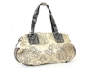 Trendy Embroidered Shoulder Bag with zipper closure. Bag has a double handle with animal print pattern. Made of PU (polyurethane).