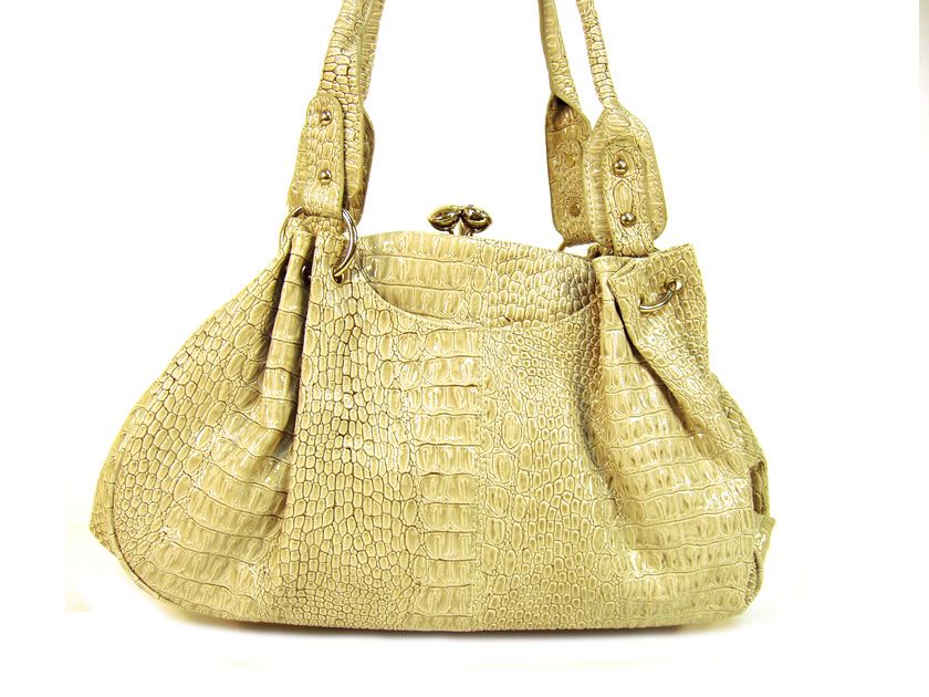 Croc Embossed Fashion Handbag In Light Gold #90511-LG