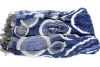 This artistically patterned 100% Polyester scarf in royal blue & white colors is Double layered and super soft to use. This retro scarf can be teamed with any kind of outfit. Thin fringes on the edges adds that extra zing to it. Imported.