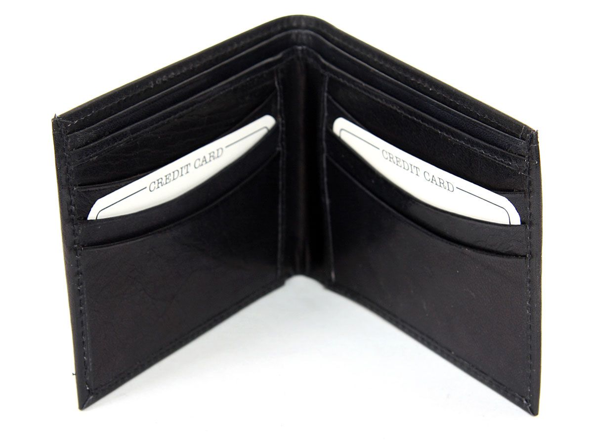 Carry your money in style. This is a genuine leather Bi-fold slim design mens wallet. 6 credit card slots, double bill bifold design. As this is genuine leather, please be aware that there will be some small creases and nicks in the leather but the wallet are all brand new.