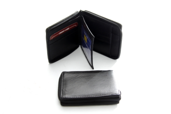 Genuine Leather all round zipper wallet. RFID Secured. Card Slots-6, Coin Pouch-1, Bill Compartment-2, ID Slot-1, Sheep Leather