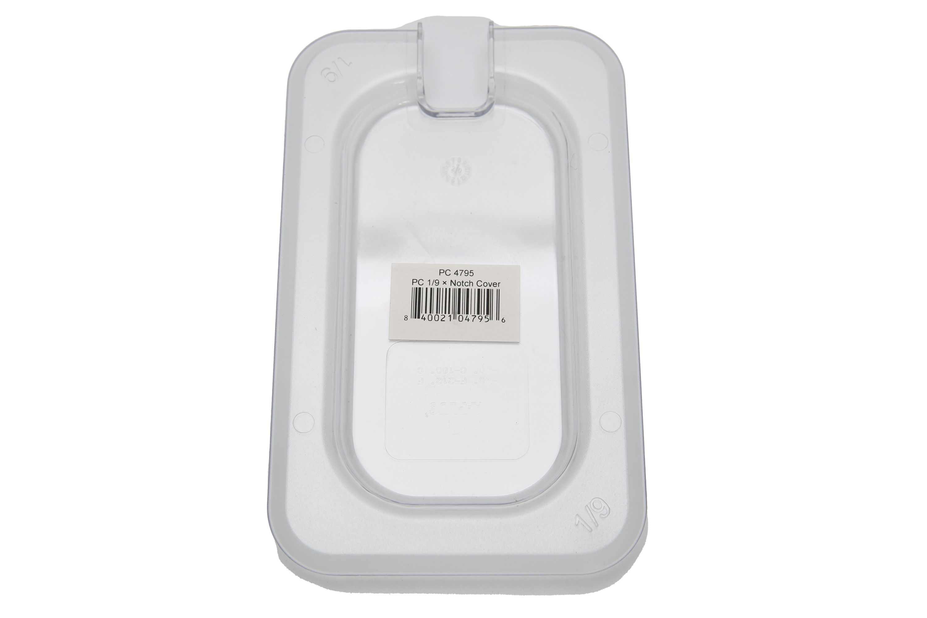 Clear Polycarbonate 1/9 size food pan Notched cover. NSF