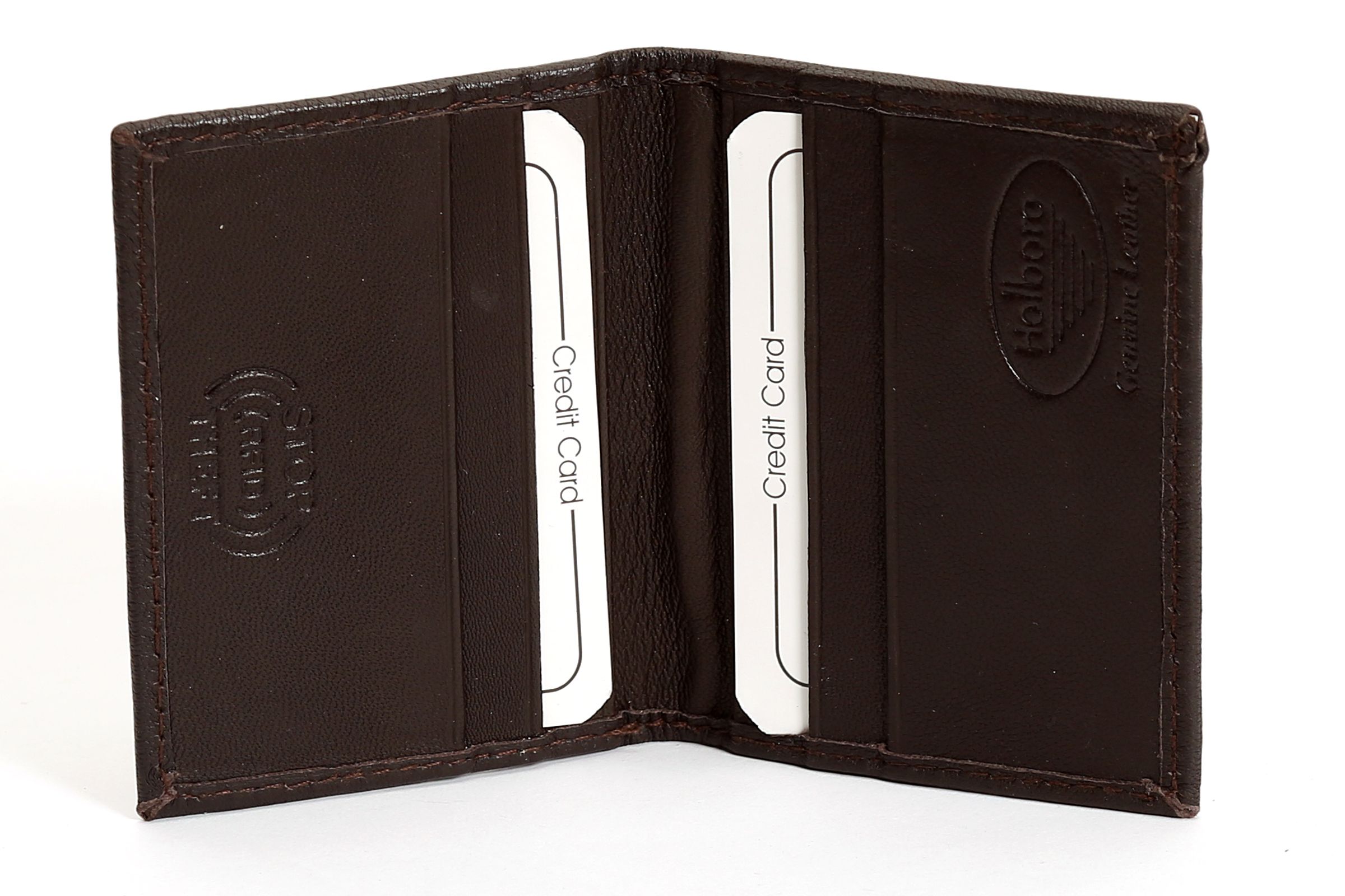 This is a genuine leather RFID credit card holder in a bifold slim design. As this is genuine leather, please be aware that there will be some small creases and nicks in the leather but the wallet are all brand new.