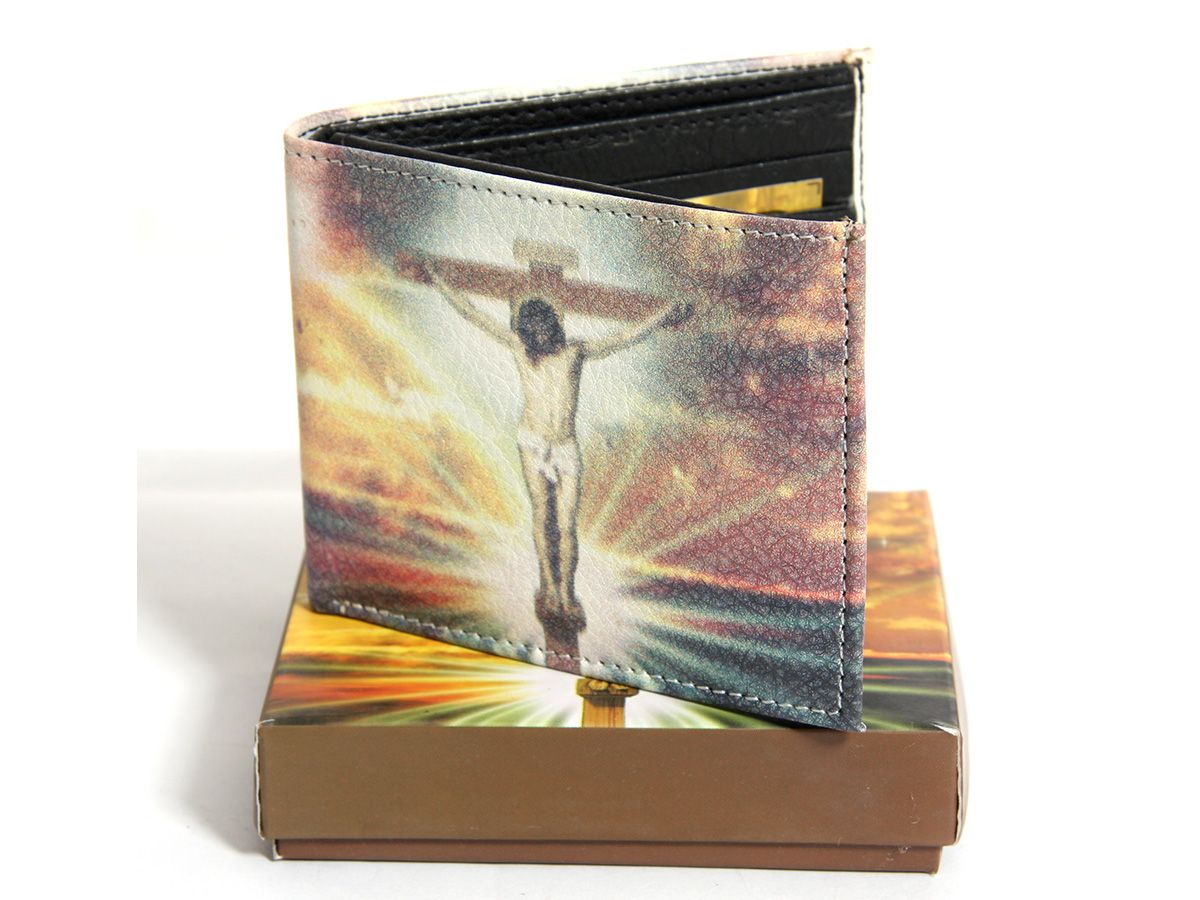 Jesus Christ Printed Men faux leather bi-fold wallet with box.