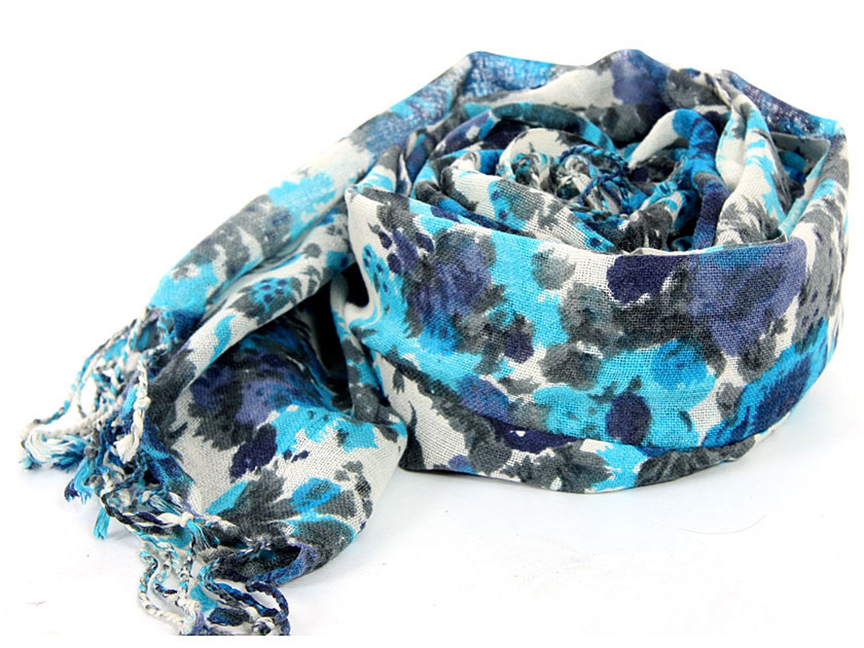 Venetian Blues saturate the lush floral print on a super soft, fringed wool scarf in Ivory color. Imported. Dry clean only.