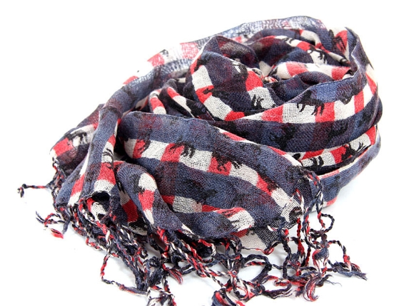Horses Over Plaids Wool Scarf #WJ-52