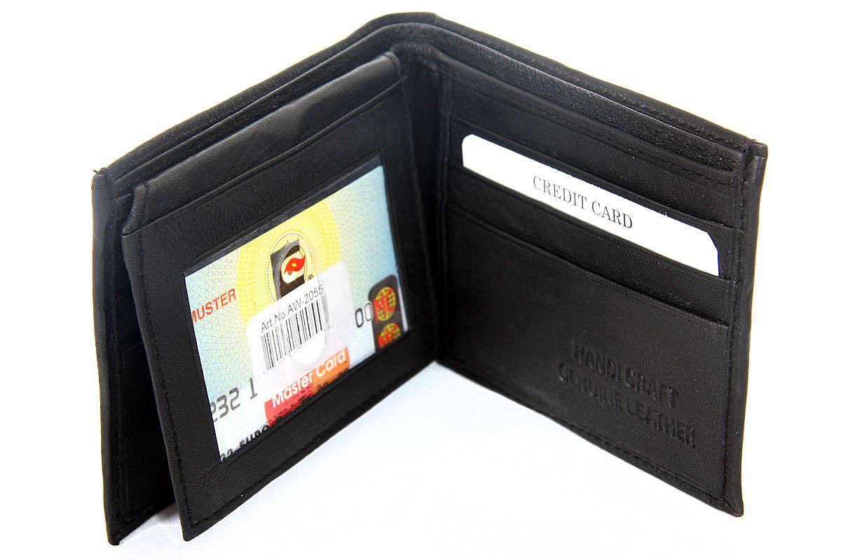 Carry your money in style. This is a genuine leather double bill bifold wallet with 6 credit card slots and 2 ID windows on the left flap.
