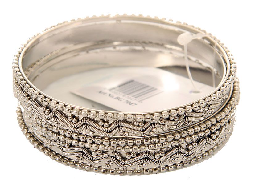 Metal Bangles Size: 2/10, (6 PCS set), Silver Plating, (12 Sets in Box)