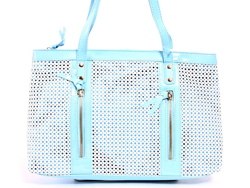 Fashion Handbag With Mesh Texture In Blue Trim #B-447-BL