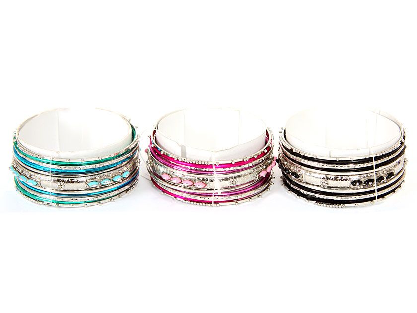 Metal Aluminum Bangles, (11 PCS Set) Silver