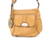 Crossbody bag with top zipper closure, outside pockets with zipper and twist lock closure. Bag has a single cross body strap. Made of PU (polyurethane).