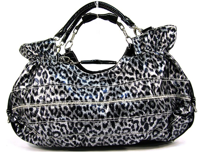 This handbag is made of polyurethane material. It has a cheetah animal print and a top zipper closure with double handle.