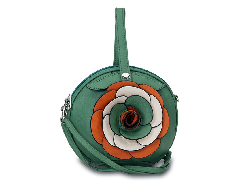 Round Clutch Bag With Large Floral Detail In Green #BY-302-GR