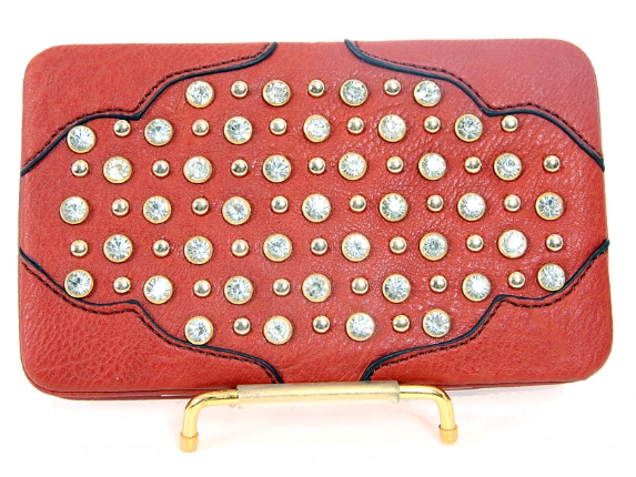 Faux Leather Rhinestones studded metal frame clutch wallet