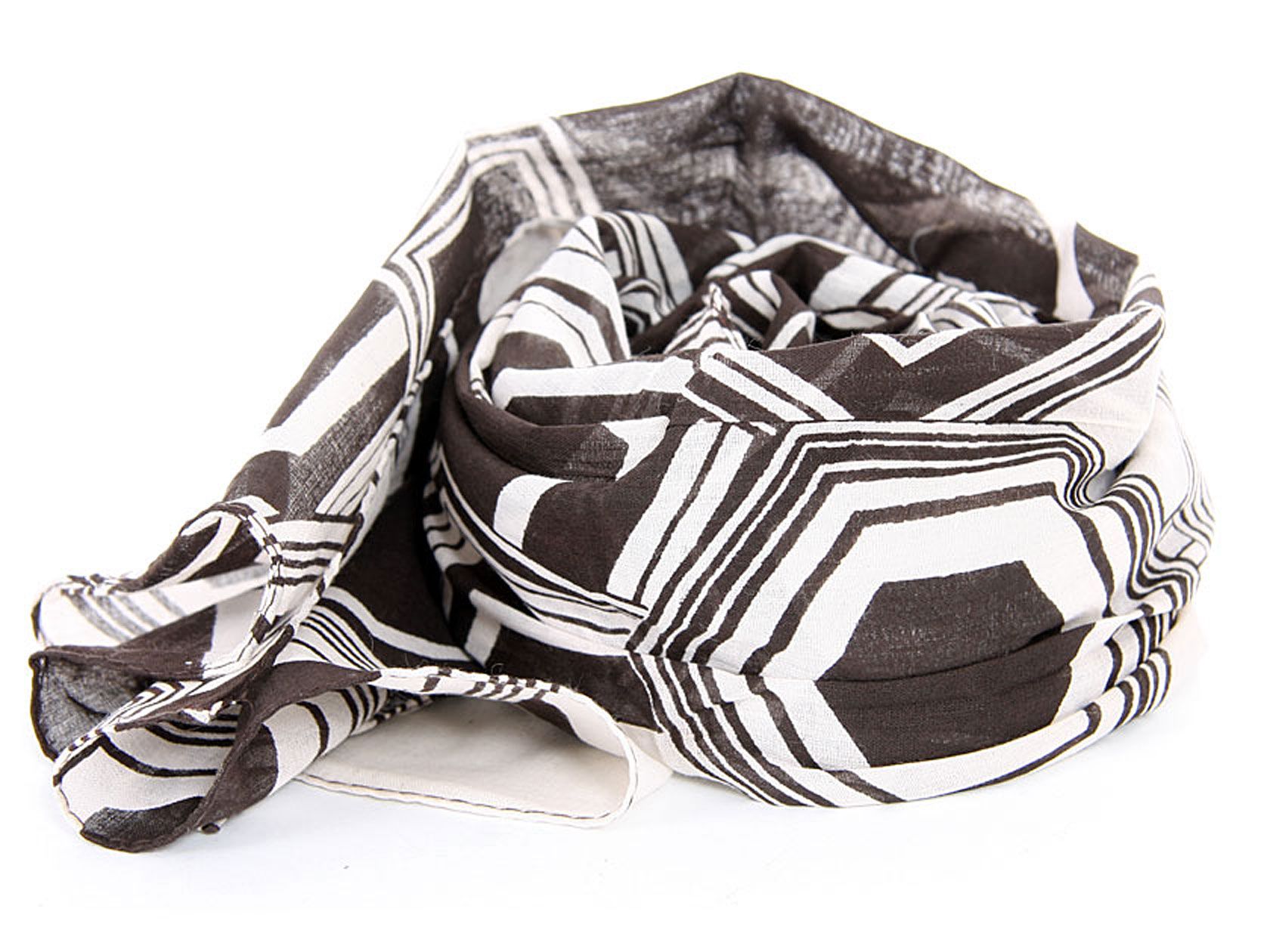 Black & white Print Cotton Scarf with hexagon like print on it. Lightweight & soft scarf can be used all year round and can be tied in any way. Imported. Hand wash.