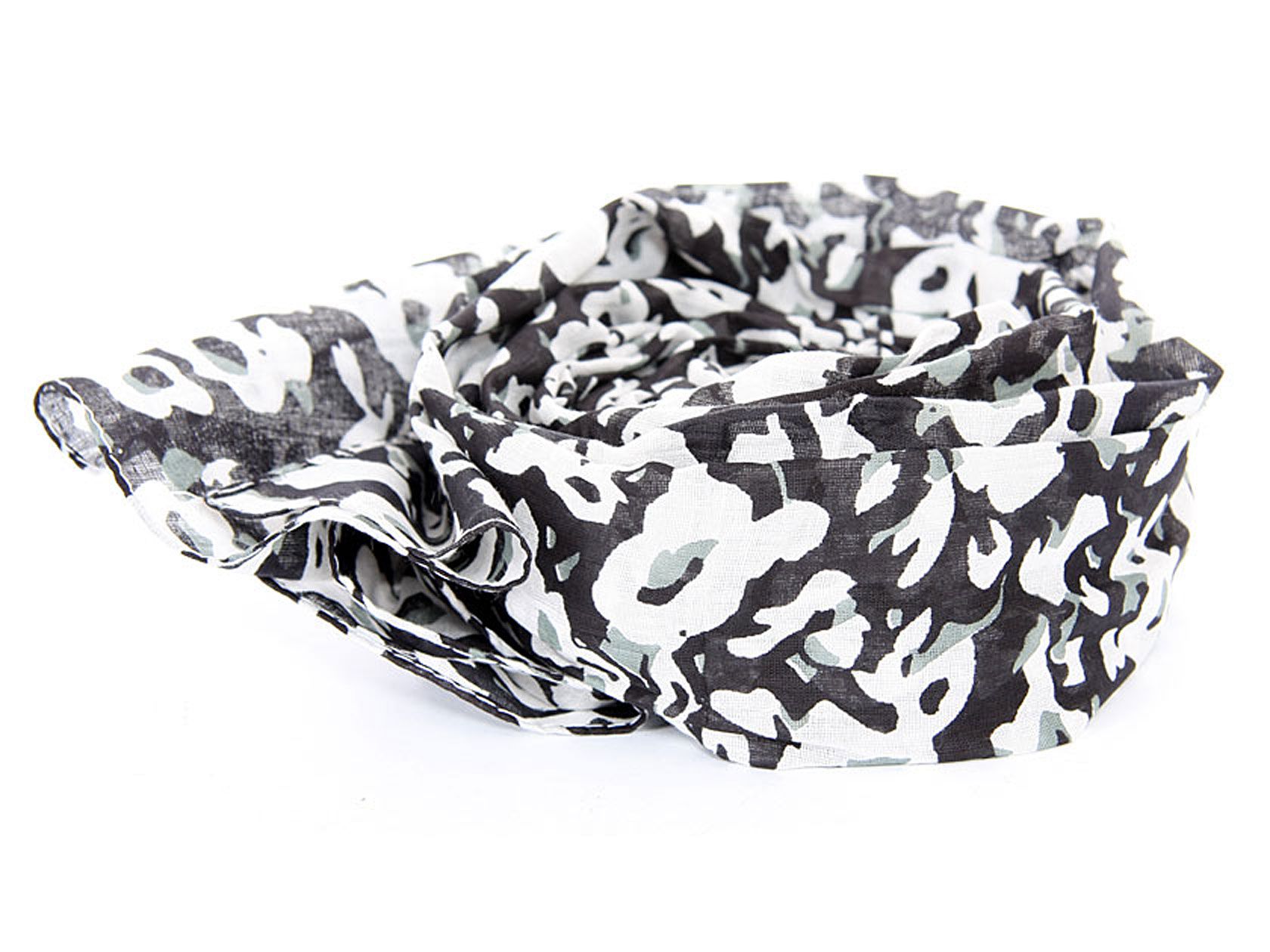 Black & White Floral Print Cotton Scarf #CENTRO-11