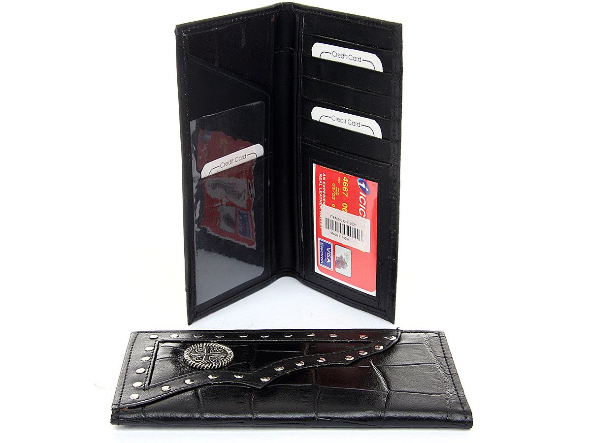 Crocodile embossed genuine leather Cross Concho check book wallet