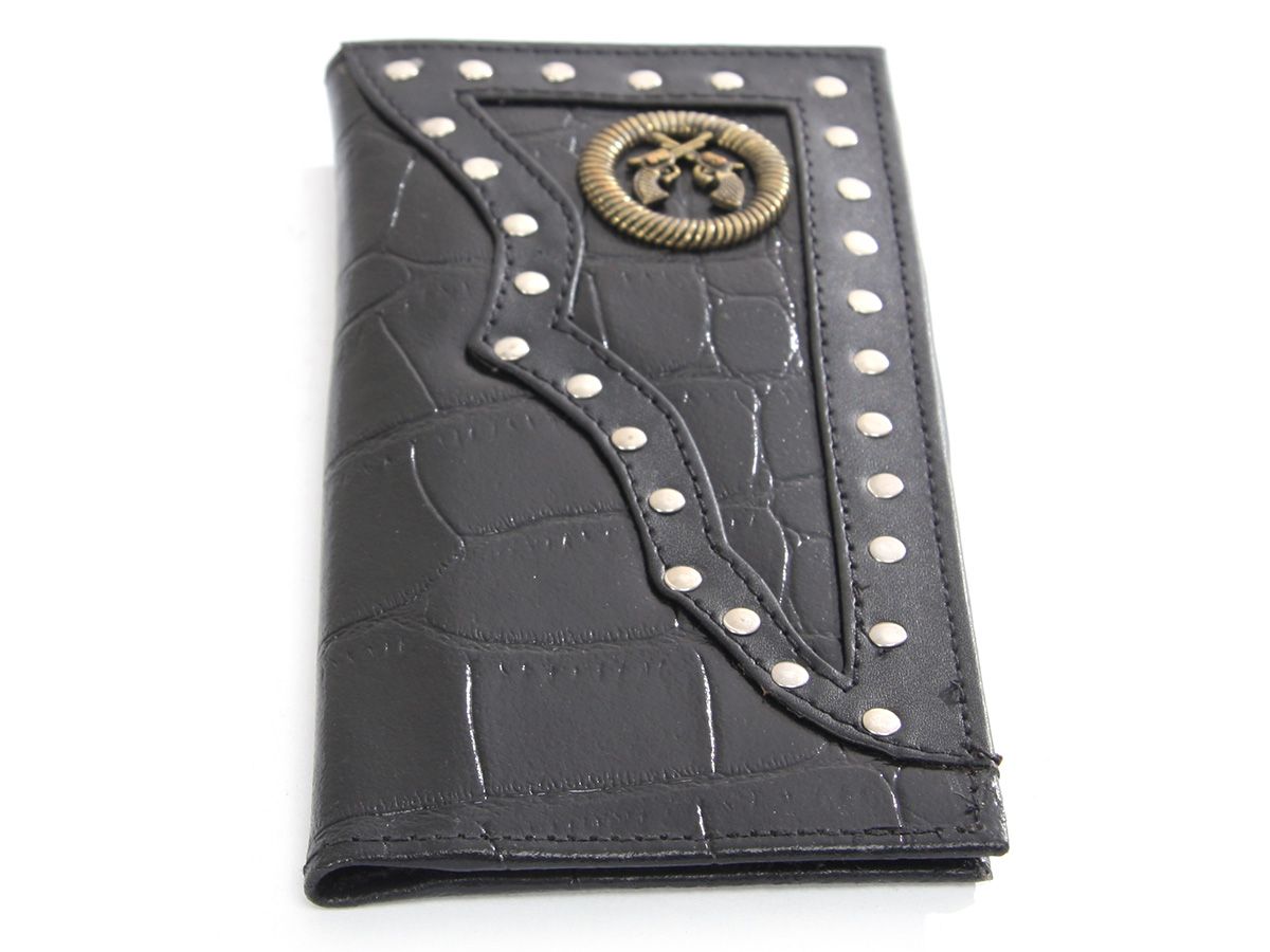 Crocodile embossed genuine leather Pistol Concho check book wallet