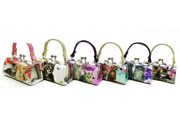 Dozen (12pk) Pack Cats Theme Mini Coin Purse Wallet #CT-03