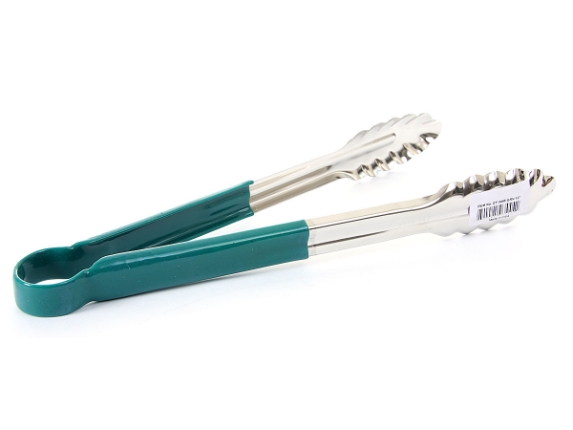 Stainless steel 12 inches utility tong with PVC handle (Green).