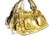 Trendy Metallic Shoulder Bag with top zipper closure, double shoulder straps, two side open pockets with drawstring closure & two front zipper pockets. Chain accents in the front. Made of PU (polyurethane).