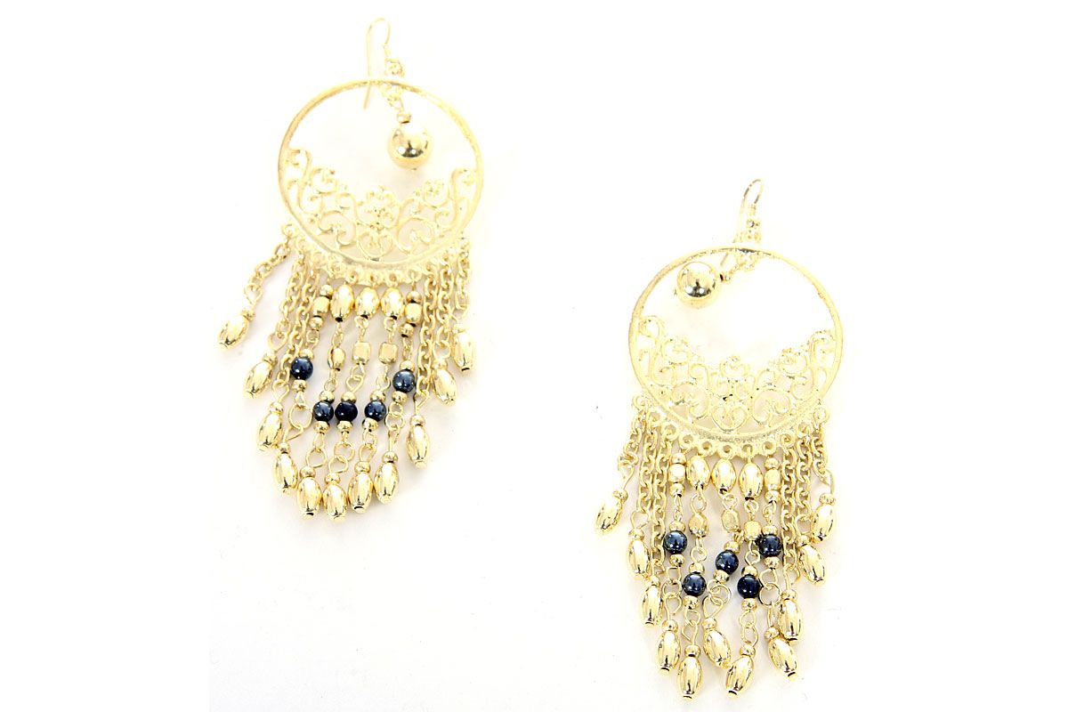 Black beads on Golden earrings.