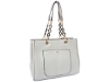 PVC double handle, front pocket, center divider fashion handbag. Top zipper closing.