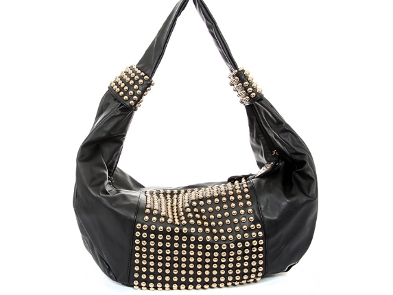 Faux Leather Studded Hobo Handbag #H-024-BK