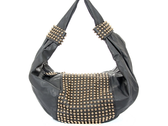 Faux Leather Studded Hobo Handbag #H-024-DG