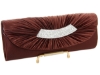 Satin Evening bag Embellished with Rhinestones strip. Magnetic snap button closing. Metal shoulder chain included.