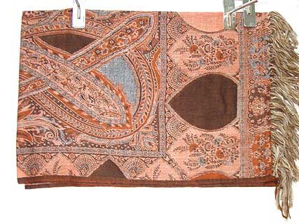100% Pure Wool Jamawar Shawl in shades of brown & peach. Imported.
