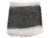 White & black colors alternate horizontally on this sheer 100% polyester scarf with stripes pattern on it. Eyelash fringe all around the scarf. Imported. Hand wash.