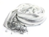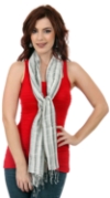 Loosely knitted yarn dyed viscose scarf in vertical stripes pattern in grey, white & black colors. Lightweight scarf has twisted fringes at its edges. Imported. Hand wash.