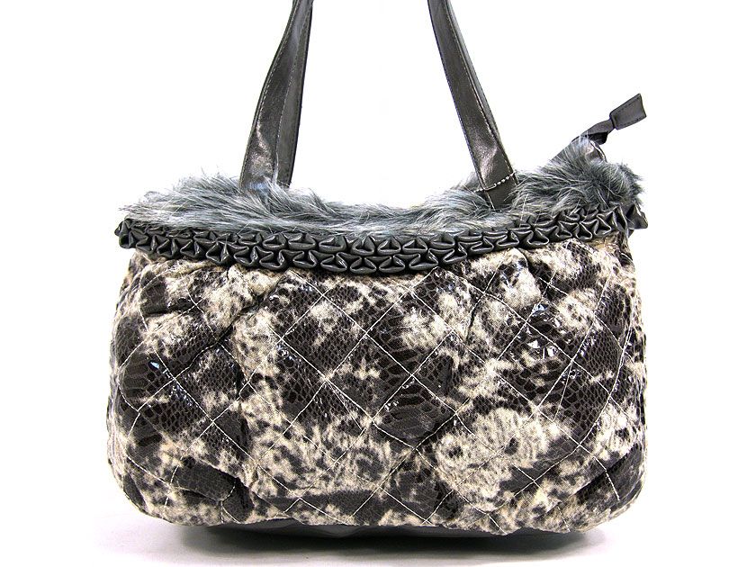 Snake Print Shoulder Bag With Faux Fur Trim #LA55856-GY
