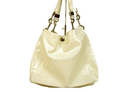 Trendy Tote Shoulder Bag with a snap closure and a detachable double handle. Bag has a metallic texture. Made of PU (polyurethane).