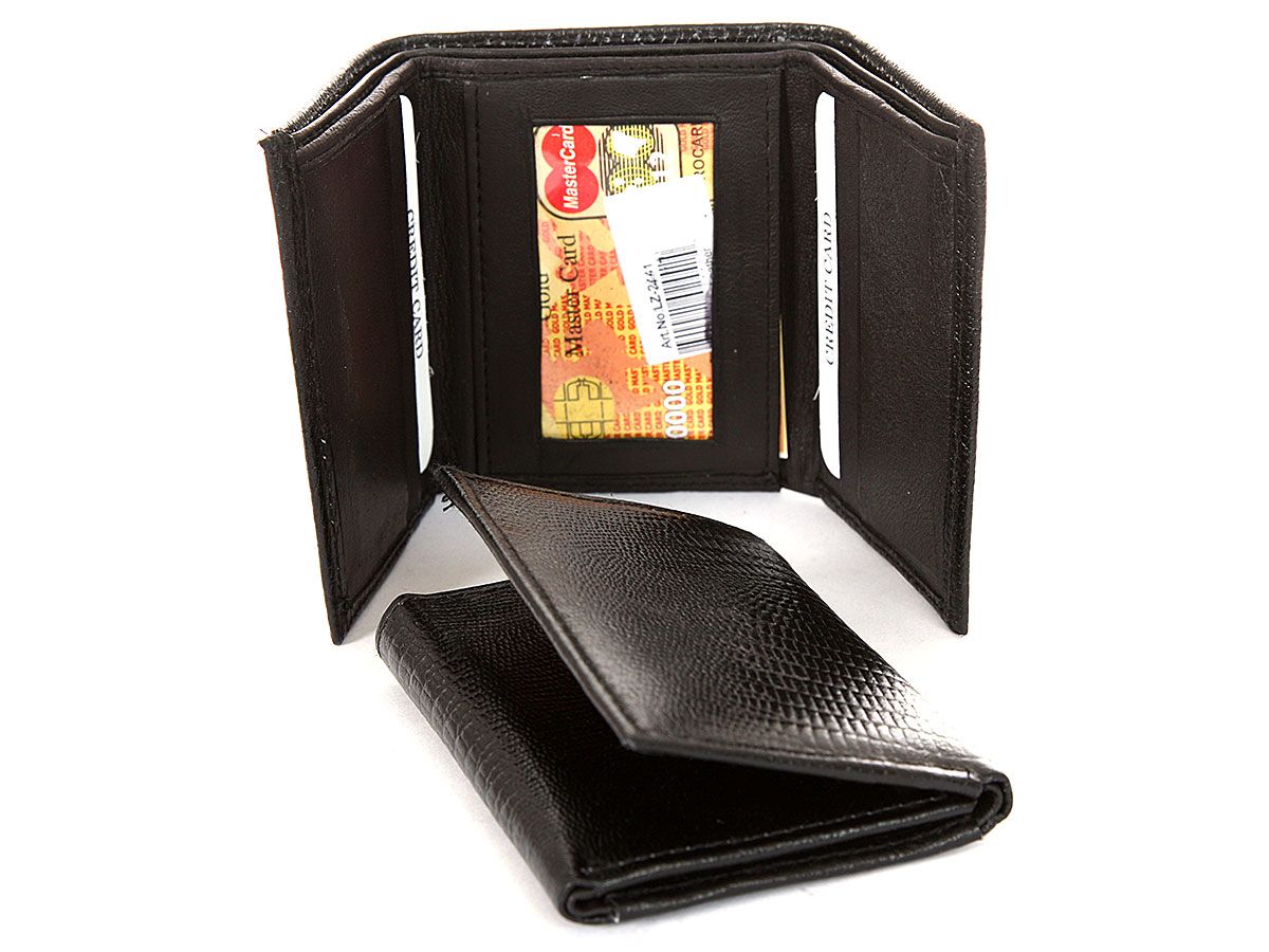 Genuine leather lizard embossed tri-fold men wallet