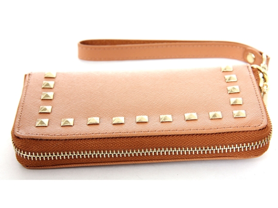 Studded all round zipper ladies leather wallet