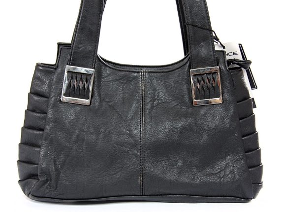 Faux Leather Fashion Handbag. Top zipper closing. Back outside zipper pocket.