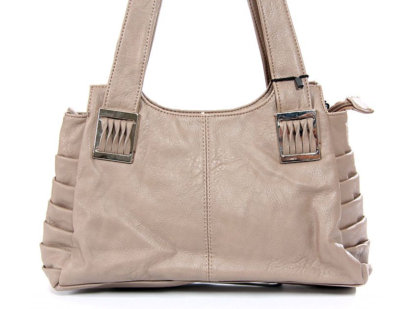 Faux Leather fashion Handbag. Top zipper closing. Back outside zipper pocket.