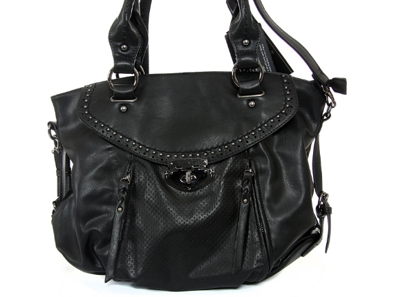 Faux leather fashion handbag. Top zipper closing, center divider, back outside zipper pocket, adjustable shoulder strap included.