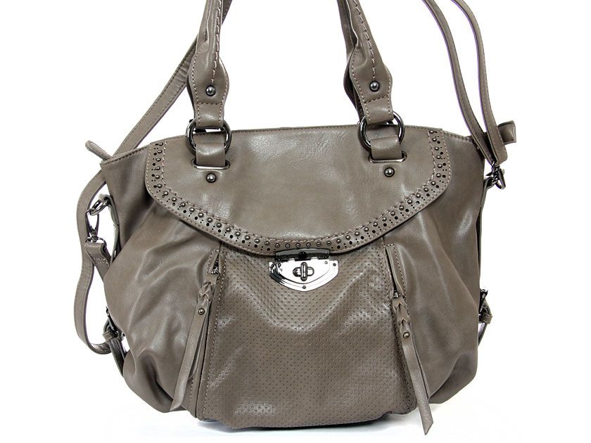 Faux leather fashion handbag. Top zipper closing, center divider, back outside zipper pocket, adjustable shoulder strap included.